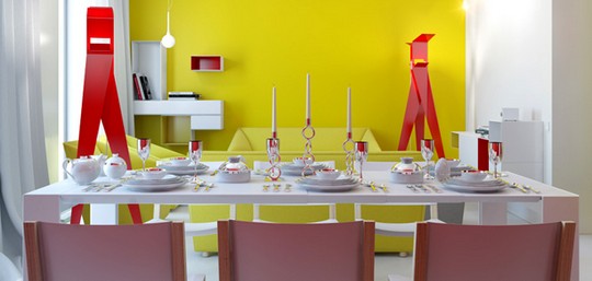 Da bi pokazala da jake boje proširuju mali prostor ukrajinska dizajnerka Ana Marinjenko hrabro i ubedljivo je iskoristila jarke boje u svom projektu nazvanom Zingzang. Upotrebila je jarku crvenu i žutu boju na većim površinama stana kao što su zidovi, plakari i kuhinjski elementi.