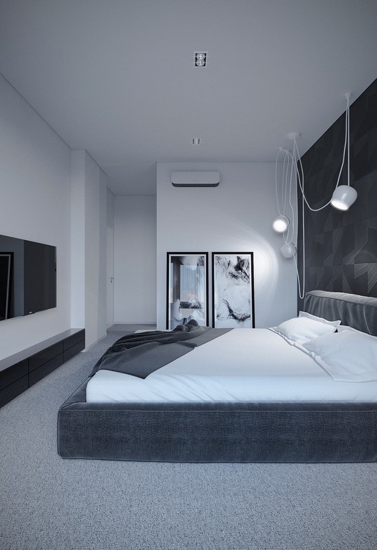 Dok su spavaće sobe idealno mesto da se eksperimentiše sa paletama boja i izborom dekora koji mogu biti previše smeli za društvene oblasti kuće, ova spavaća soba ima praktičniji pristup. ![]() Taman stil pomoći će vam da se fokusirate, i stvarajući atmosferu opuštenosti učiniće da lepše i lakše zaspite svake noći. Ne samo da su tamne sobe praktične, već su veliki kandidati za sofisticiran dizajn - umerena paleta boja pokazuje smisao za disciplinu i ciljanu pažnju koje je teško postići razigranijim pristupom sa više boja. ![]() Takav hrabar pristup sa ograničenom paletom može gotovo svaki prostor učiniti minimalističkim, ali ovde, pametna upotreba suptilne teksture pomaže da čitava soba ostane interesantna i impresivna. ![]() Inteligentno iskorišćena umetnička dela nastavljaju kontrast razbijanja oštrih uglova nežnim linijama. ![]() Crno i belo koje ispunjava ovu spavaću sobu presečeno je sivim tonovima samo kroz efekat svetlosti i senke (sa nekoliko izuzetaka, poput tepiha i detalja na slikama). Generalno, soba izgleda tamno ali ne i sumorno zahvaljujući bogatstvu belih površina kao kontrasta crnim. ![]() Svetla su iz "AIM" serije braće Ronan i Ervan Bouroullec. To je možda jedini "vajarski" element u sobi pored zidnih panela, što ga čini savršenim spojem estetskog detalja i funkcije. |