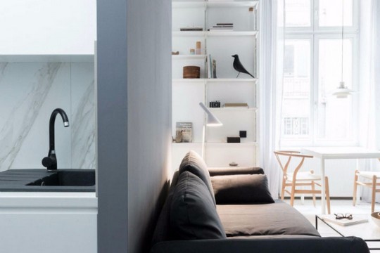 Nisu svi preterano uzbuđeni kada dođe do dekorisanja malih stanova, ali upravo kod malih enterijera, detalji dolaze do izražaja. Mnogi smatraju da garsonjere nisu vredne glamura, dok drugi pate zbog nedovoljnog izbora nameštaja koji su dizajnirani za male stanove. Mi vam predstavljamo jednostavan enterijer, koji je bojama i minimalističkim pristupom savršeno uklopljen u male kvadrate. Možda dobijete ideju za vaš prostor. ![]() Možete dizajniranju garsonjere pristupiti kao vlasnik stana koji se nalazi u Poljskoj. On je opremio mali enterijer jednostavnim nameštajem, tako da se dobije utisak da je veći i gostoljubiviji, a potpuno se uklopio uz njegov urbani stil. Dnevna soba je opremljeno svetlo braon sofom, jednostavnim i modernim stočićem za kafu, kao i stolicom za ljuljanje koja komplementira zidovima bele boje. ![]() Vlasnik je stan osvežio belom bojom, ali je sivim zidom postigao kontrast. Jednostavne linije nameštaja, svedene forme, su upotpunile kompletan doživljaj prostora. Iako je minimalizam u pitanju, i možda nekome deluje kao hladan prostor, vlasnik je postIgao to što je želeo - dobio je pravi kutak za jednog muškarca. ![]() Stan je kreiran u snežno beloj temi koja prožima čitav enterijer. Zidovi i cigle ofarbani su u belo, kako bi se savršeno uklapali sa belim karakteristikama dekora. Takođe, savršeno su izbalansirani svetli elementi, a sivi pregradni zid izgleda kao skulptura. ![]() Ovaj stan je po prirodi mali, što nije sprečilo njegovog vlasnika da ga iskoristi maksimalno. Kuhinja se nalazi odmah pored dnevne sobe, a mermerne ploče na zidu su joj dale poseban šmek. Kuhinjski elementi finiširani su belom bojom, a crna sudopera je idealan kontrast u ovoj čistoj belini. ![]() Rustična siva vrata su precizno naglasile ulaz, a ogledalo je vizuelno proširilo hodnik. Kao prirodni motiv je postavljena saksija sa biljkom, koja unosi toplinu i osećaj dobrodošlice za svakog gosta. ![]() U dnevnom boravku se nalazi trpezarija, sa jednostavnim belim stolom i dve drvene stolice, a poseban detalj je polica na zidu, na kojoj su izloženi ukrasi i knjige, tako da trpezarija može služiti i kao biblioteka. ![]() Spavaća soba je takođe kompaktna, dok joj svetla tema dekora pruža daleko prostraniji izgled. Ovde je uključena stona lampa koja se idealno slaže sa belom posteljinom i braon jastučnicama. A na uzglavlju kreveta, gde je zid od opeke, nalazi se interesantan detalj u obliku kocke. ![]() ![]() Kada vlasnik ujutru otvori oči, prvo što ugleda je osvetljen prostor sa zanimljivim dekorom, koji u njemu budi pozitivnu emociju i energiju za dan koji mu predstoji. Belo ne mora uvek da bude dosadno. Rasterećeno, čisto, svedeno... ![]() Izvor: mojenterijer.rs / N.Đ.