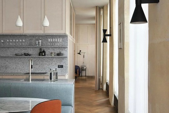 | Atelier du Pont se nalazi u centralnoj četvrti Pariza i završio je renoviranje stana u postojećoj zgradi iz 18. veka. Unutrašnjost obuhvata otvoreni plan i uklanja čvrste pregrade kako bi stvorila savremeni stambeni prostor koji se vrti oko lakoće i transparentnosti. Koncept “radikalne” obnove bio je da se čitava rezidencija projektuje kao jednokrevetna soba, bez vrata ili odvajanja tipičnih za takav dom. Budući da je dizajn studija Atelier du Pont zasnovan na otvorenosti, privatnost je stvorena implementacijom velikog “rotirajućeg panela” i “drvene kocke” za podelu prostora. Paneli se koriste između spavaće sobe i dnevnog boravka, pružajući privatnost kada je to potrebno ili ostavljajući je otvorenom za vidljivost kroz stan tokom dana. Kupatilo je smešteno unutar „drvene kocke“, koja se opet može prilagoditi da bude zatvorena ili otvorena. Materijalnost dizajna pažljivo je zamišljena kako bi ulepšala stan i stvorila savremeni osećaj prostora. Svetlo obojena drvo i teraco donose luksuznu kombinaciju materijala i uspešno nadopunjuju pariske peskirane zidove koji su ogoljeni. Tradicionalni parket zadržan je kao atraktivna podna obloga i direktna asocijacija na zgradu iz 18. veka. Materijali su praćeni nameštajem izrađenim po meri i čitavim nizom prozora koji pružaju veličanstven pogled i zajedno čine prelepo renoviran stan. Izvor: Design Boom / Foto: Manuel Zublena |