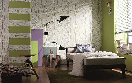Dah prirode u spavaćoj sobi možete osetiti ako jednobojne tapete iskombinujete sa tapetama koje imaju motiv grana drveća.